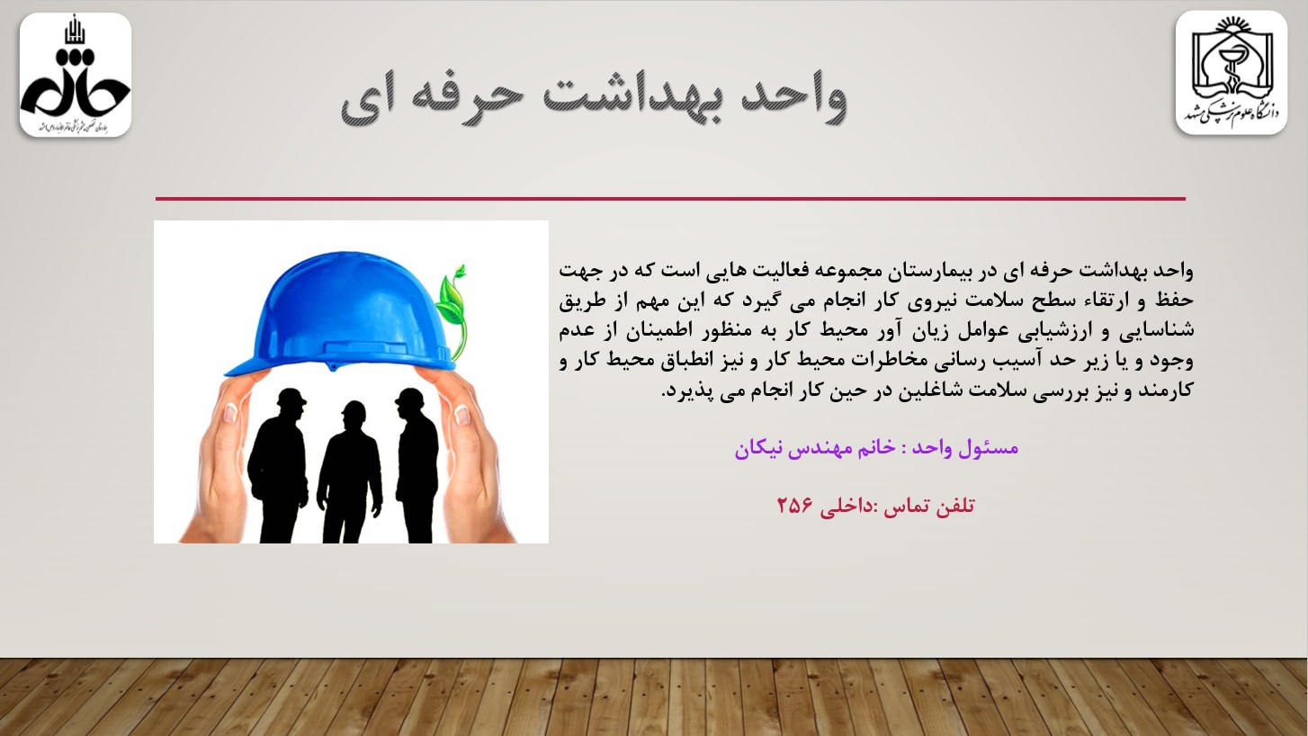 مقررات واحد بهداشت حرفه اي مطابق با آئين نامه هاي مربوطه و از جمله آيين نامه ايمني امور پيمانكاري