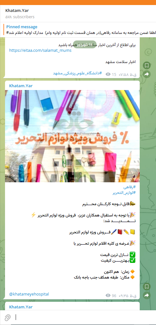 زهرا حسینی 18 شهریور 1403 بازدید: 106 امتیاز: ( 0 Rating ) برگزاری غرفه ویژه لوازم تحریر برای کارکنان امتیاز کاربران لطفا رای دهید رای 1 رای 2 رای 3 رای 4 رای 5 عکس اطلاعیه شبکه اجتماعی عکس اطلاعیه شبکه اجتماعی عکس برگزاری غرفه لوازم تحریر با تخفیف ویژه مختص پرسنل و مراجعین اطلاعیه شبکه اجتماعی