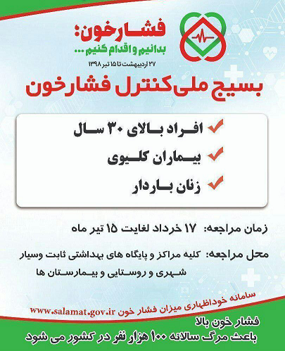 جهت اندازه گیری فشارخون خود به واحدهای سلامت نزدیک محل سکونت خود یا ایستگاههای سیار مراجعه نمایند