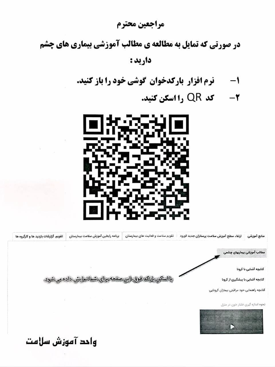✅جهت تسهیل در دسترسی به محتوای آموزشی بیماریهای چشــــــــم✨ کـــد QR✨ تهیه گردید .