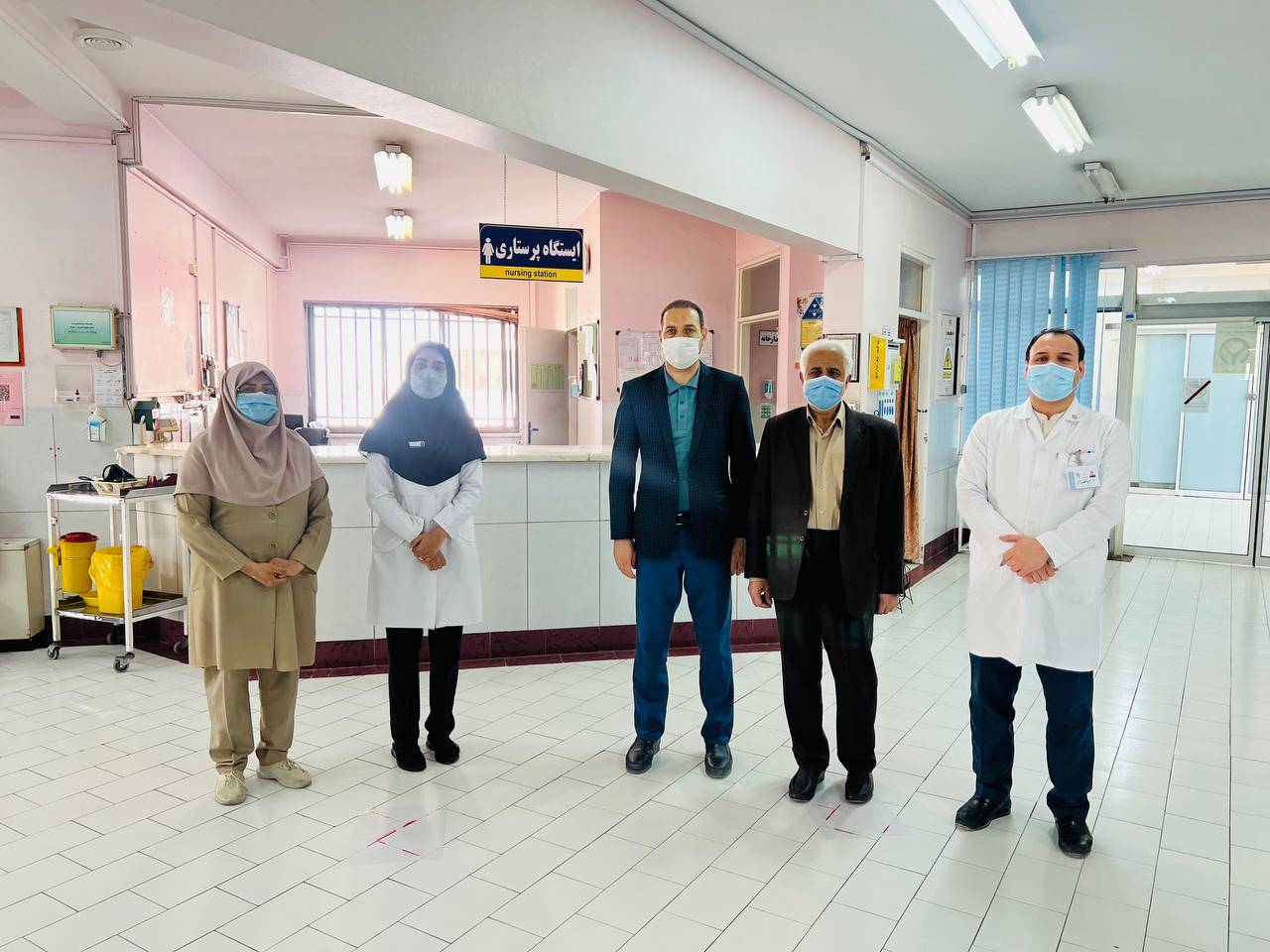 دید و بازدید نوروزی ریاست محترم بیمارستان جناب آقای دکتر درخشان از واحدهای مختلف درمانی و اداری و تبریک سال جدید به همکاران حاضر در شیفت.