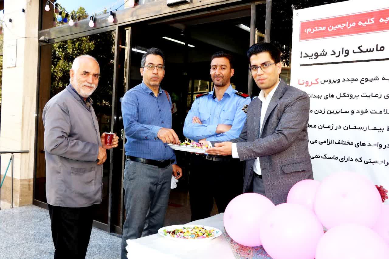 صبح امروز مورخ 1402/3/10 میلاد با سعادت حضرت امام رضا (ع) در بیمارستان خاتم الانبیاء(ص) با توزیع شیرینی و شکلات بین کارکنان و مراجعین و اهدا بادکنک به کودکان گرامی داشته شد. همچنین جمعی از خادمین آستان مقدس حرم رضوی با حضور در بخش های بستری با اهدا گل و بسته های متبرکی از حرم مطهر رضوی به عیادت از بیماران پرداختند.