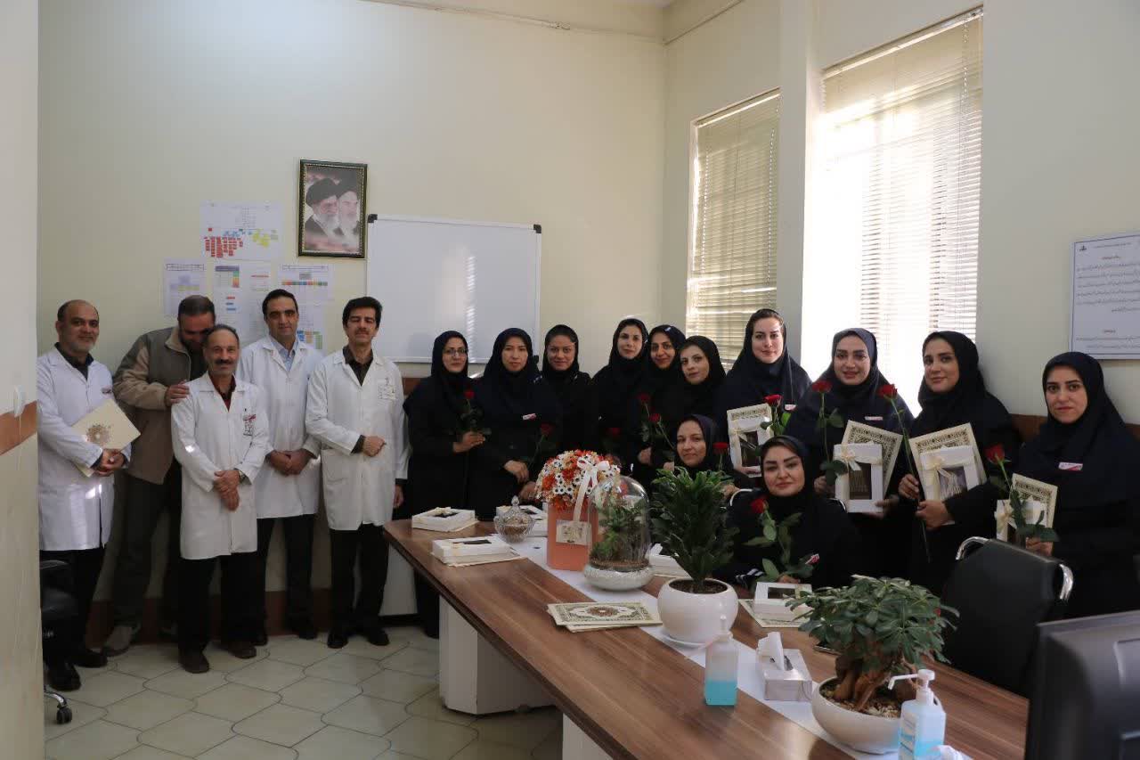 به مناسبت روز پرستار، رییس بیمارستان دکتر اکبر درخشان، مدیر محترم بیمارستان دکتر وفایی نژاد و جمعی از مسئولین تیم مدیریتی بیمارستان ضمن بازدید از بخشهای مختلف بیمارستان و اهدای گل، از زحمات پرستاران و کارکنان تقدیر به عمل آوردند.