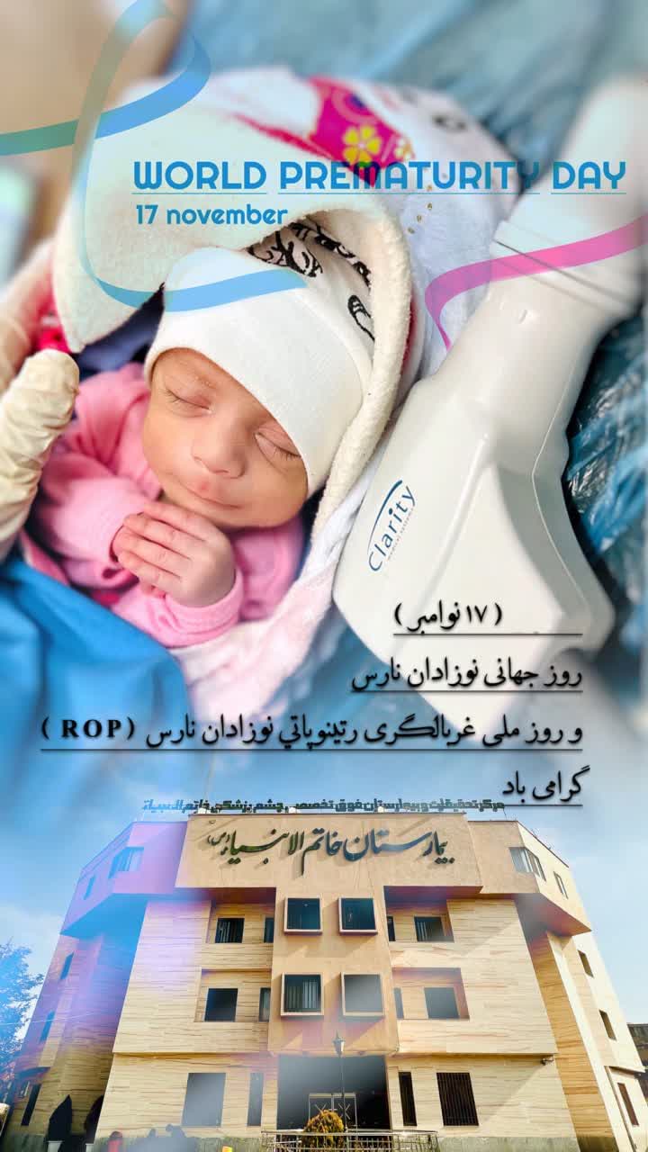 به مناسبت گرامیداشت روز جهانی نوزاد نارس یکشنبه مورخ ۲۷ آبان با حضور دکتر وفایی نژاد مدیر بیمارستان، دکتر شعیبی رییس بخش واحد ROP به همراه مدیر پرستاری و جمعی از مسئولین بیمارستان مراسم گرامیداشت روز جهانی نوزادان نارس و روز ملی غربالگری رتینوپات در بیمارستان خاتم الانبیا(ص) برگزار شد.